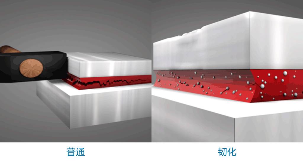 如果冲击负载,韧化的瞬干胶可通过吸收冲击力来防止开裂蔓延至粘层。