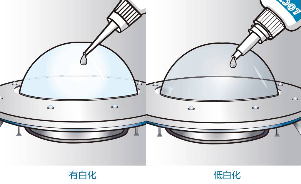 白化或雾化是一种现象,是指当氰基丙烯酸酯单体挥发掉一部分后,与周围环境中的水分发生反应,然后落回的部分,便会留下白色粉末状的残留。(炫酷应用:实际上,侦探会在犯罪现场用它来查找指纹)。有几种方法可以防白化,例如,装配区域保持良好通风,应用少量粘合剂,和/或快速固化粘合剂。另一种选择就是,使用乐泰低气味/低白化瞬干胶,挥发更少,白化的可能性更低。