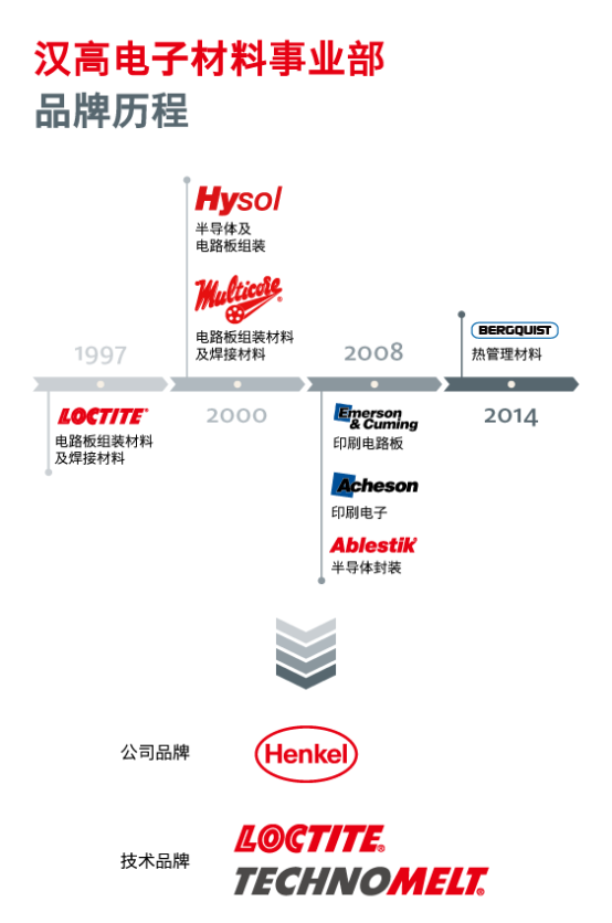 做为全球领先的电子材料供应商,汉高电子为电子及半导体厂商提供全系列电子材料解决方案。在经过多年并购及整合行业领先品牌,如乐泰(LOCTITE)、爱博斯迪科(ABLESTIK)、贝格斯(Bergquist)之后,如今汉高已经拥有从芯片粘接、塑封、焊接材料、底部填充剂、电路板保护材料、热管理材料等全系列半导体封装及电路板组装解决方案。