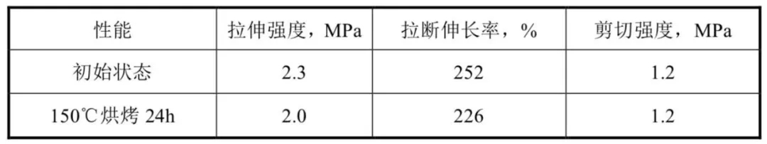 汽车行驶的了一定的时间,车灯的温度上升至一个值 ,这样的高温会慢慢传递到车灯密封胶上,破坏密封胶的粘接性,导致车灯密封失效。所以对密封胶的耐高温性能是一个严格的考验,下表是有机硅密封胶试样养护结束后,在 150℃高温下烘烤24h后的拉伸强度、拉断伸长率及剪切强度的测试结果。由上表可见,在150℃高温下烘烤24 h 后,有机硅密封胶的拉伸强度和剪切强度均未有明显变化。在高温条件下,有机硅密封胶不会失去其粘接性和弹性,仍然可以起到非常好的密封防水作用。