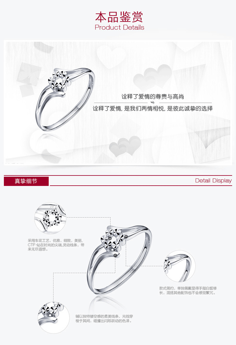 • 商品名称:周大福珠宝首饰时尚车花PT950铂金戒指PT149094